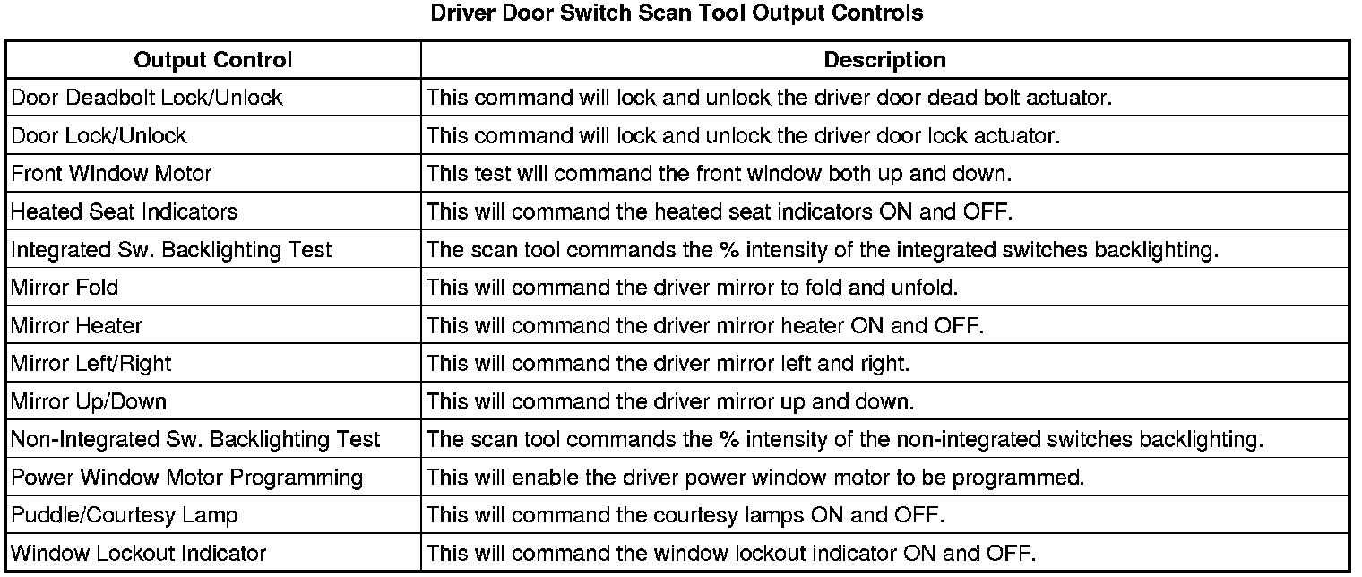 Door Lock Control Module Scan Tool Information (Driver Door Switch)