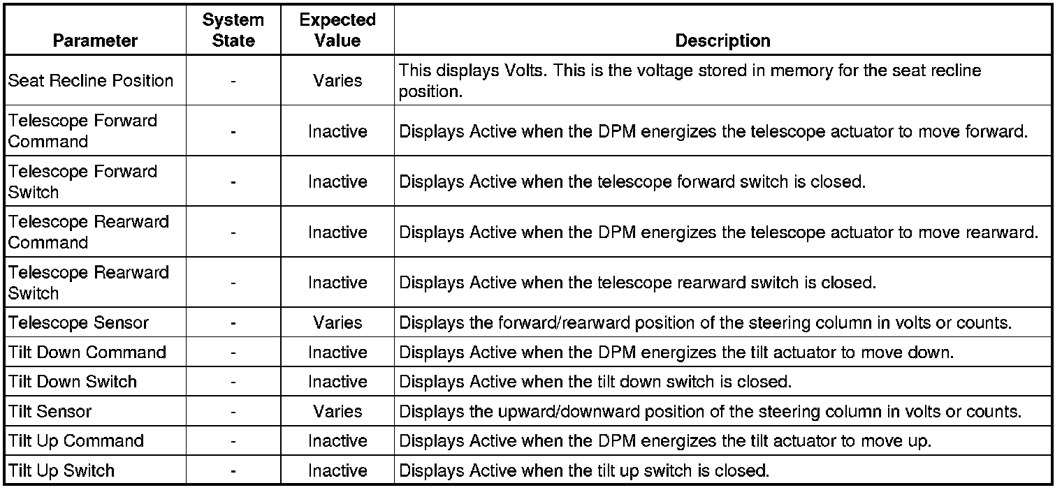 Driver Seat Adjuster Memory Module Scan Tool Information