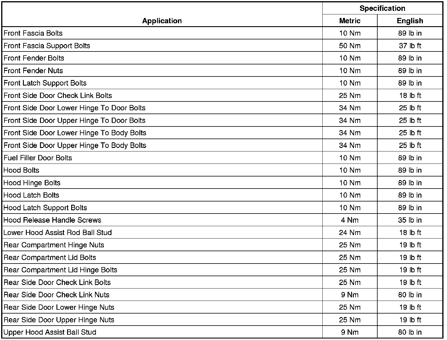 Fastener Tightening Specifications