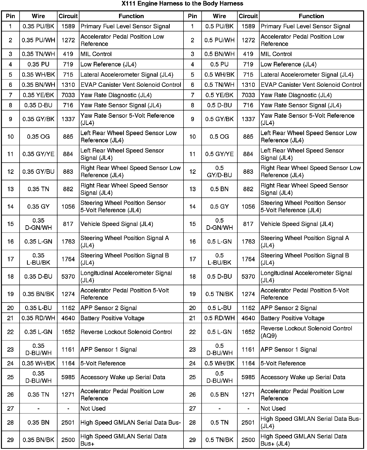 X111 Engine Harness to the Body Harness