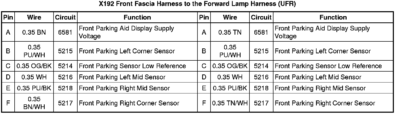 X192 Front Fascia Harness to the Forward Lamp Harness (UFR)