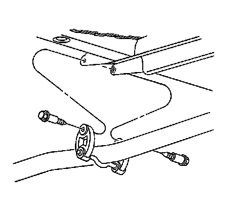 6. Install the bolts securing the center exhaust hangers to the rear suspension support brackets.