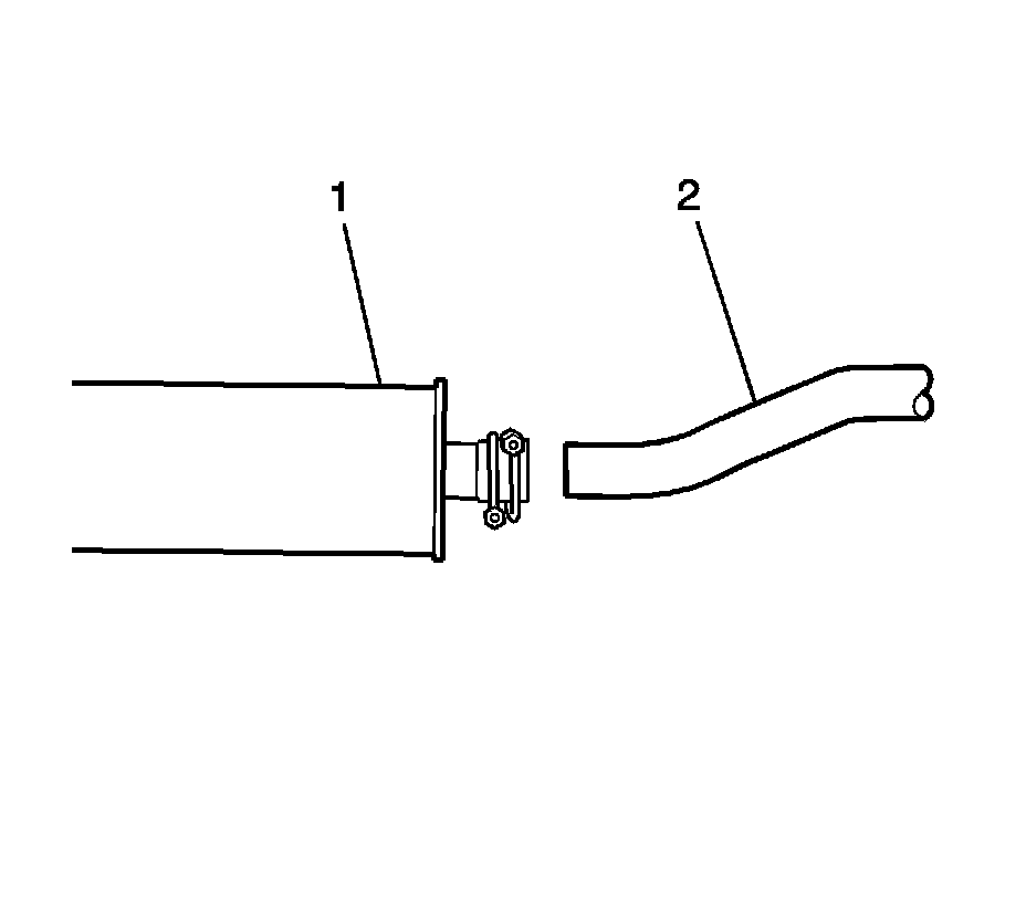 2. Slide the catalytic converter assembly (1) outlet pipe over the intermediate pipe (2).