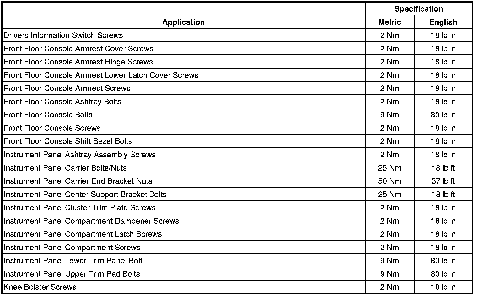 Fastener Tightening Specifications