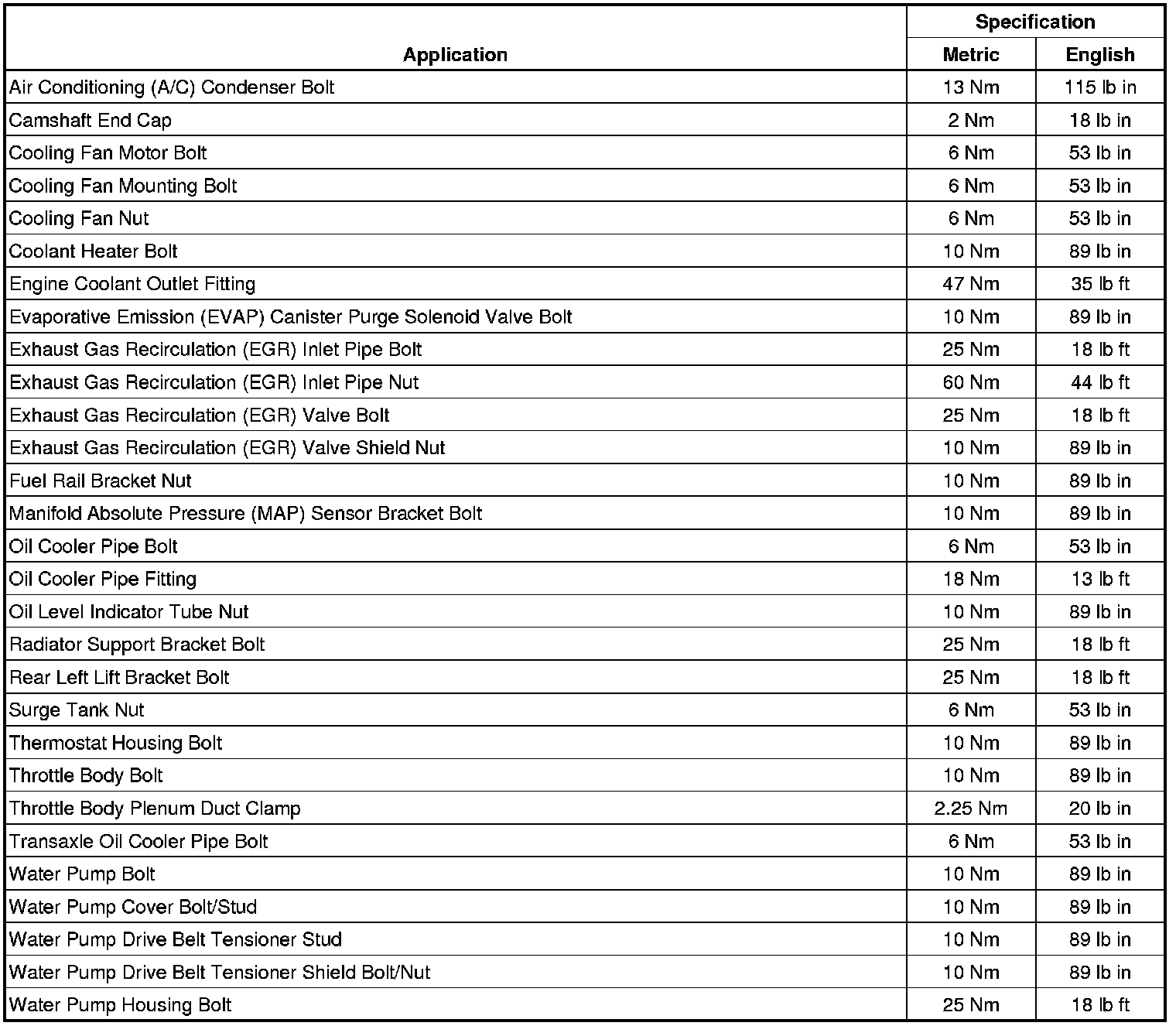 Fastener Tightening Specifications