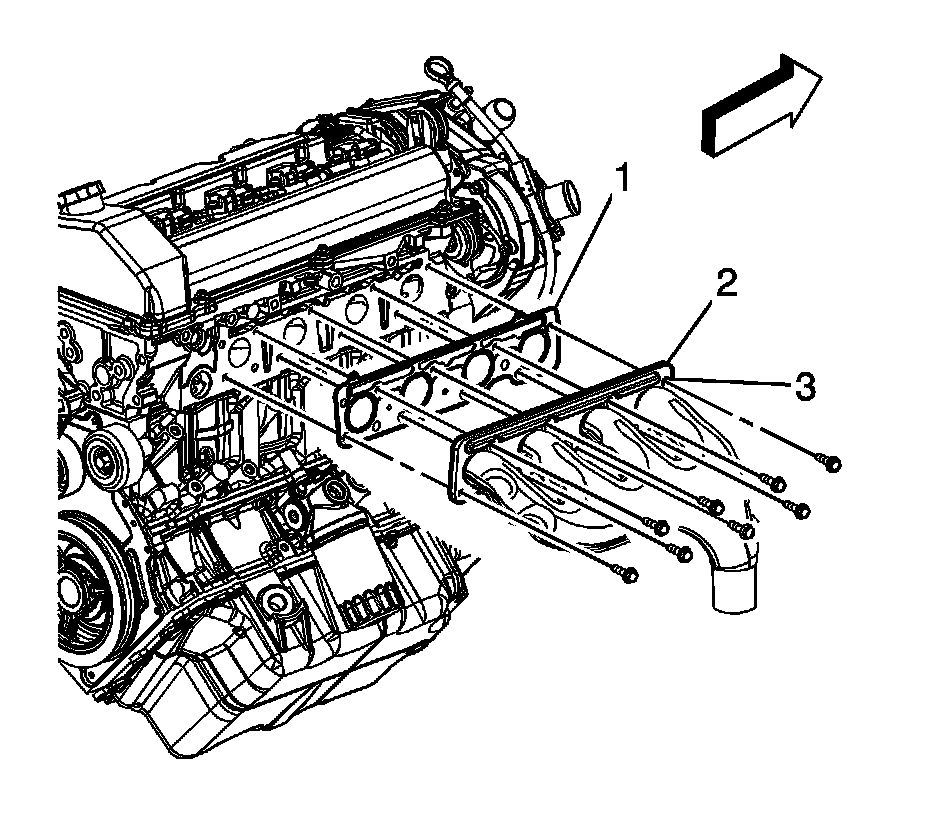 Tighten bolts starting from right to left beginning with the bolt in this location (2)