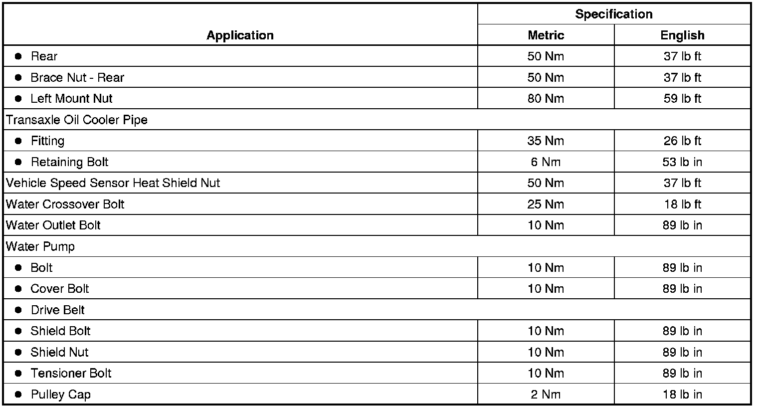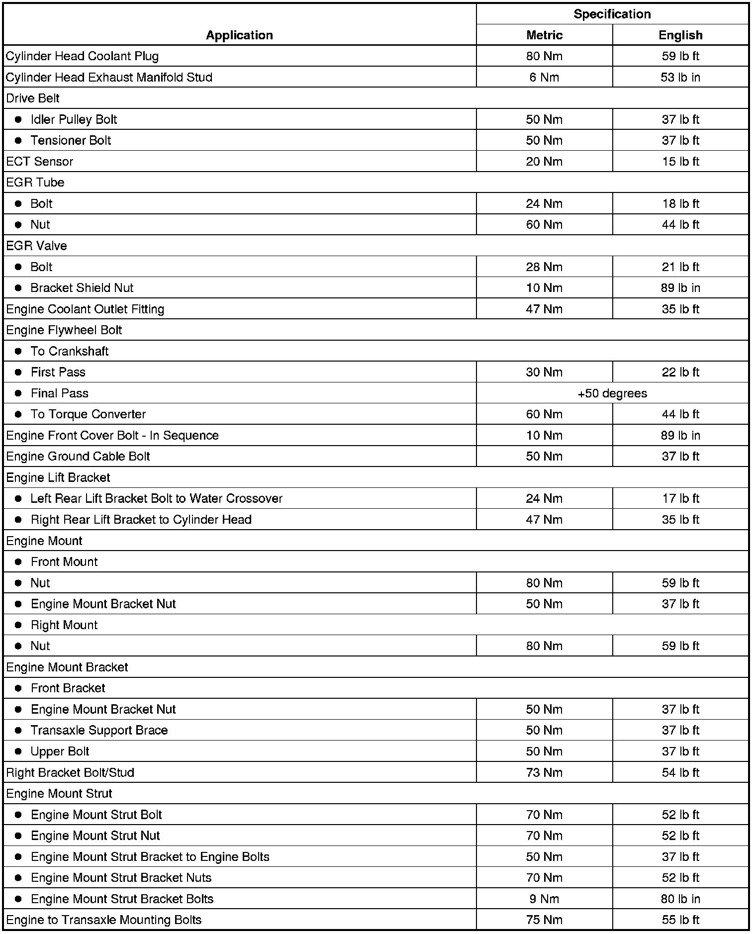 Fastener Tightening Specifications
