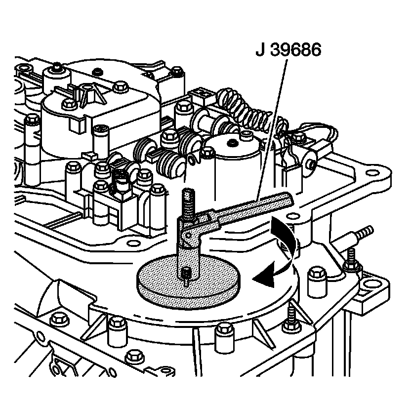 1. Install the J 39686 - input end play check tool into the case barrel and install the post.