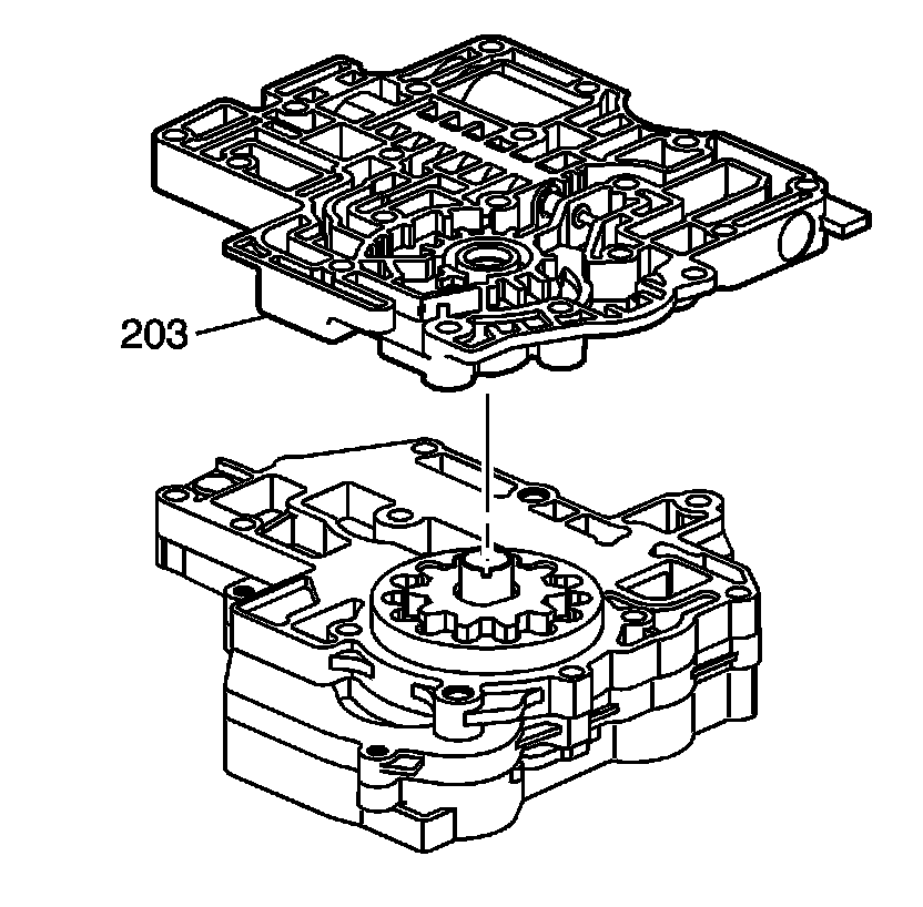 2. Remove the secondary pump body (203) from the pump assembly. This is a snug fit due to the use of two dowel pins.