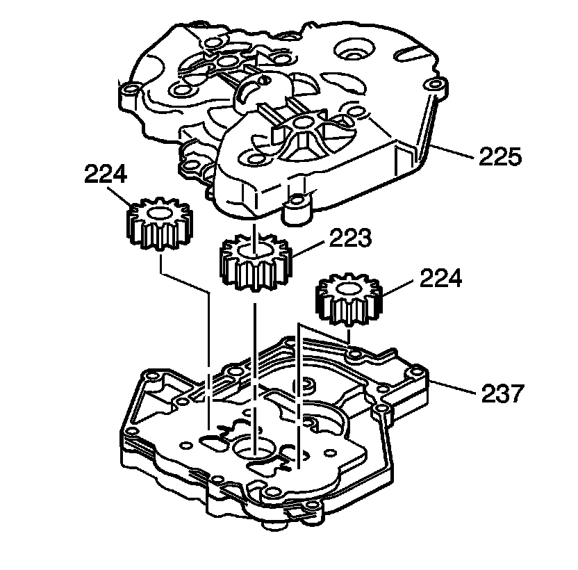 4. Remove the scavenge pump body (225) from the scavenge pump cover (237).