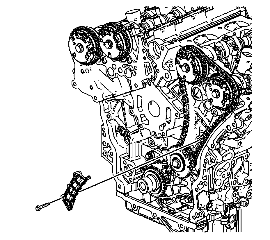 3. Install the secondary camshaft drive chain guide bolts and tighten to 25 Nm (18 lb ft).