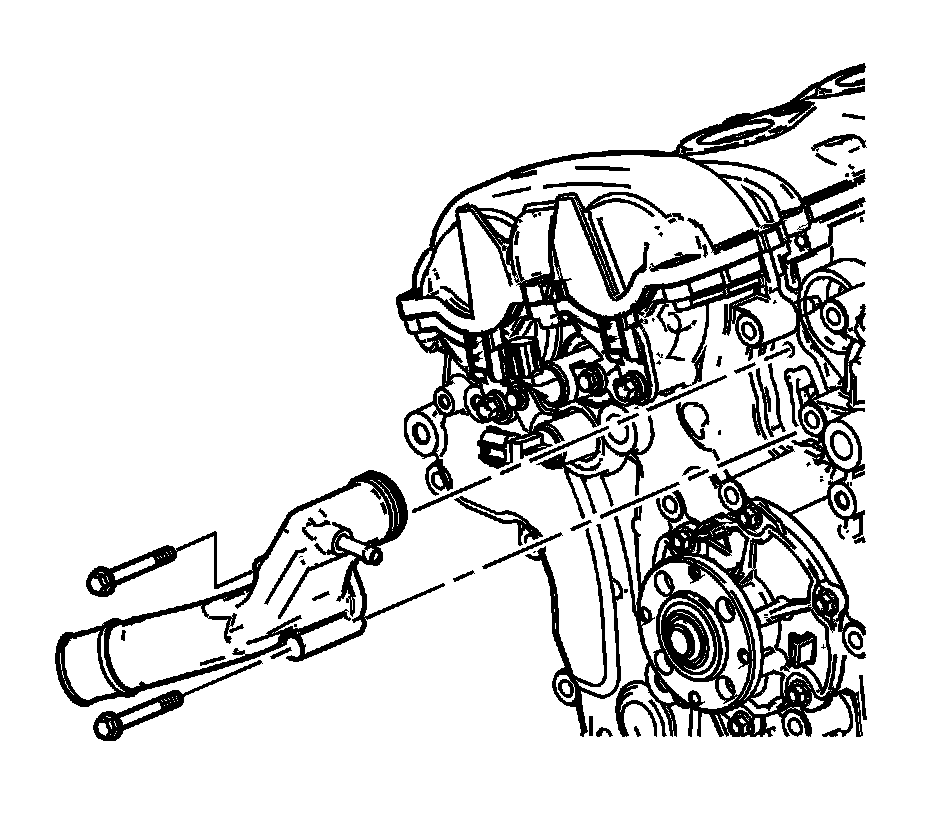 Place the water outlet and gaskets in position.