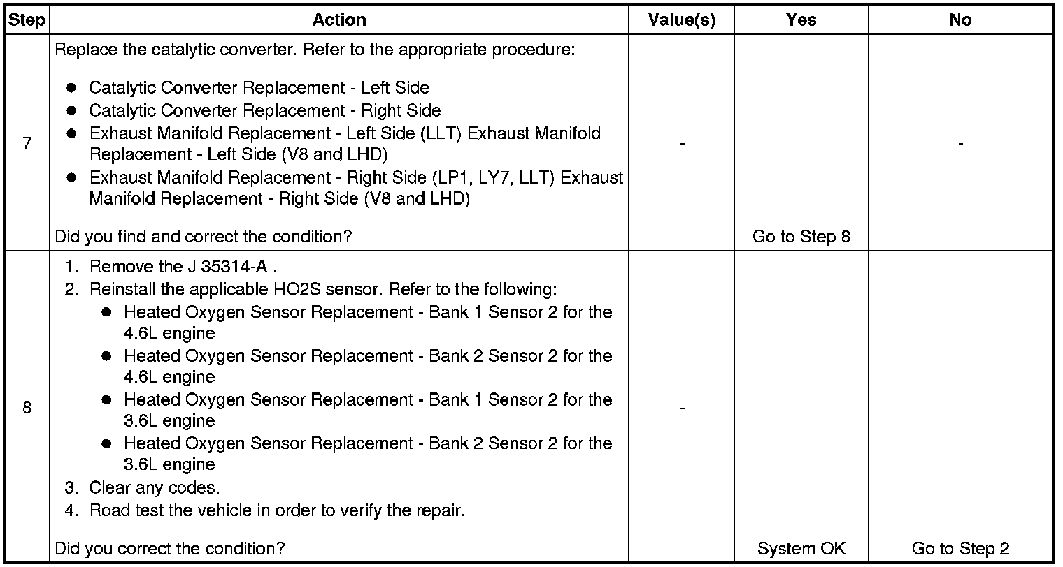 Removing the heated oxygen (HO2S) sensor may set a DTC. When finishing this diagnostic table, be sure to clear all codes.