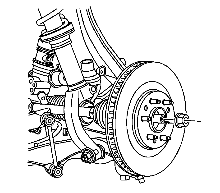 Caution: Avoid tool contact to the outer constant velocity boot when removing the wheel bearing mounting bolts. Failure to observe this caution may result in damage to the CV boot.