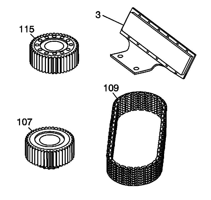 4. Inspect the driven sprocket (115) and the drive sprocket (107) for the following conditions: