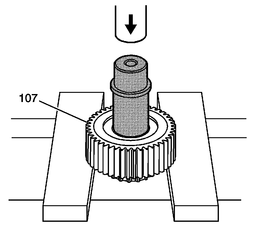 9. If the bushing in the sprocket (107) is damaged, it can be replaced using the J 46266 - bushing installer and a press to remove the bushing.