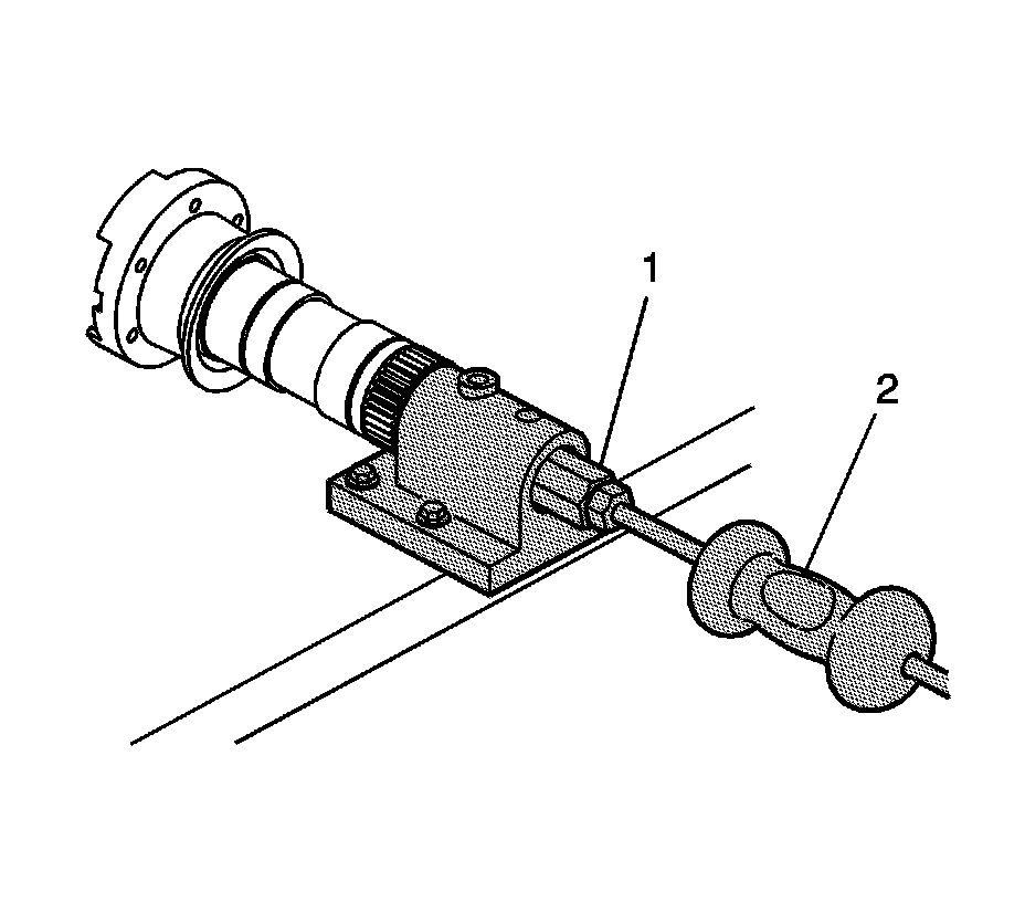 13. Insert the J-2619-A - slide hammer (2) into the J 45548 - bushing and bearing remover (1) and pull the bushing from the output shaft.