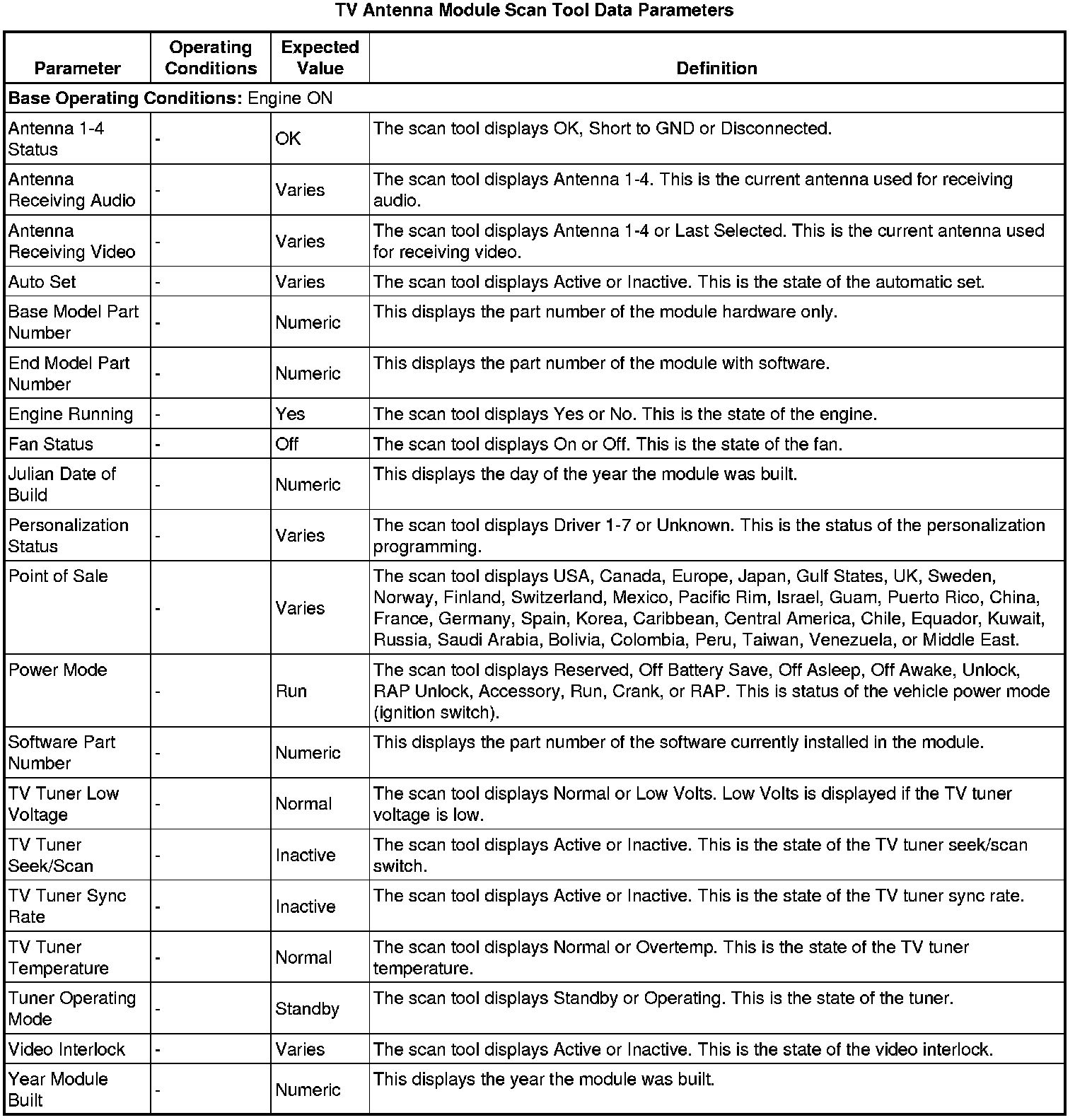 Radio Power Antenna Control Module Scan Tool Information