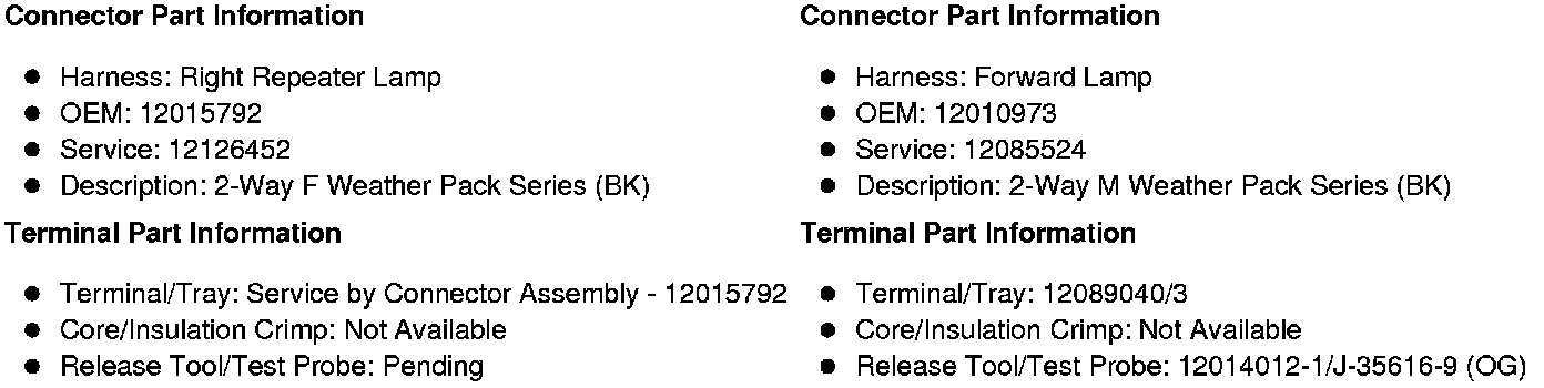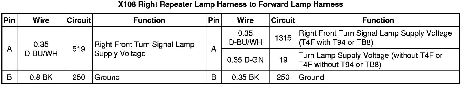 X108 Right Repeater Lamp Harness to Forward Lamp Harness