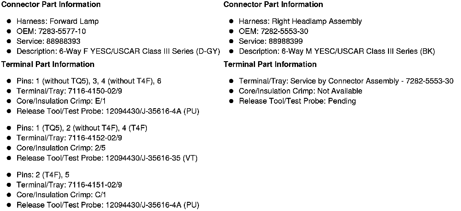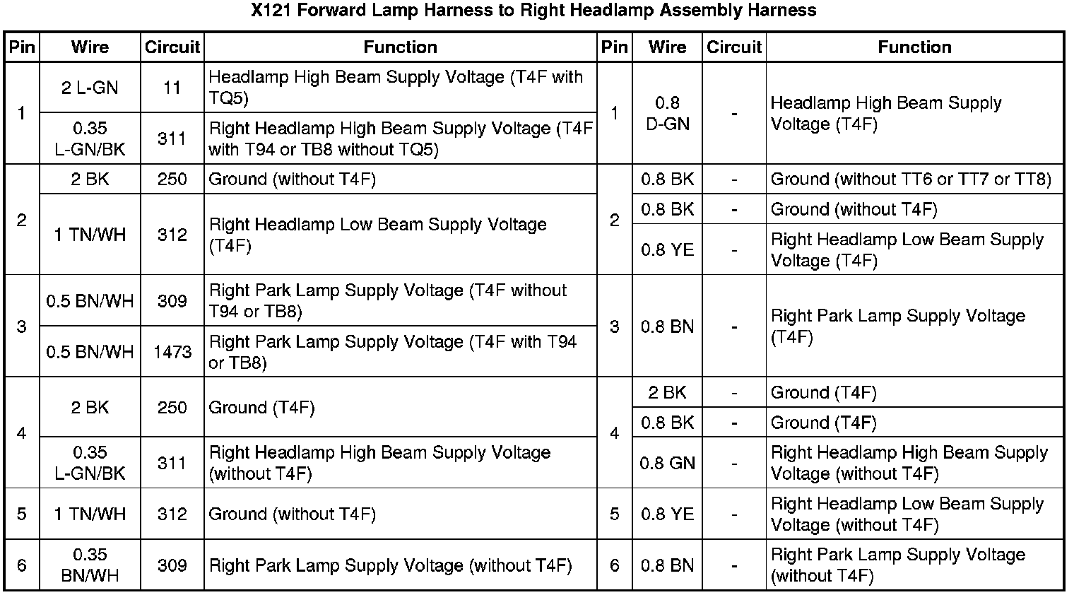 X121 Forward Lamp Harness to Right Headlamp Assembly Harness