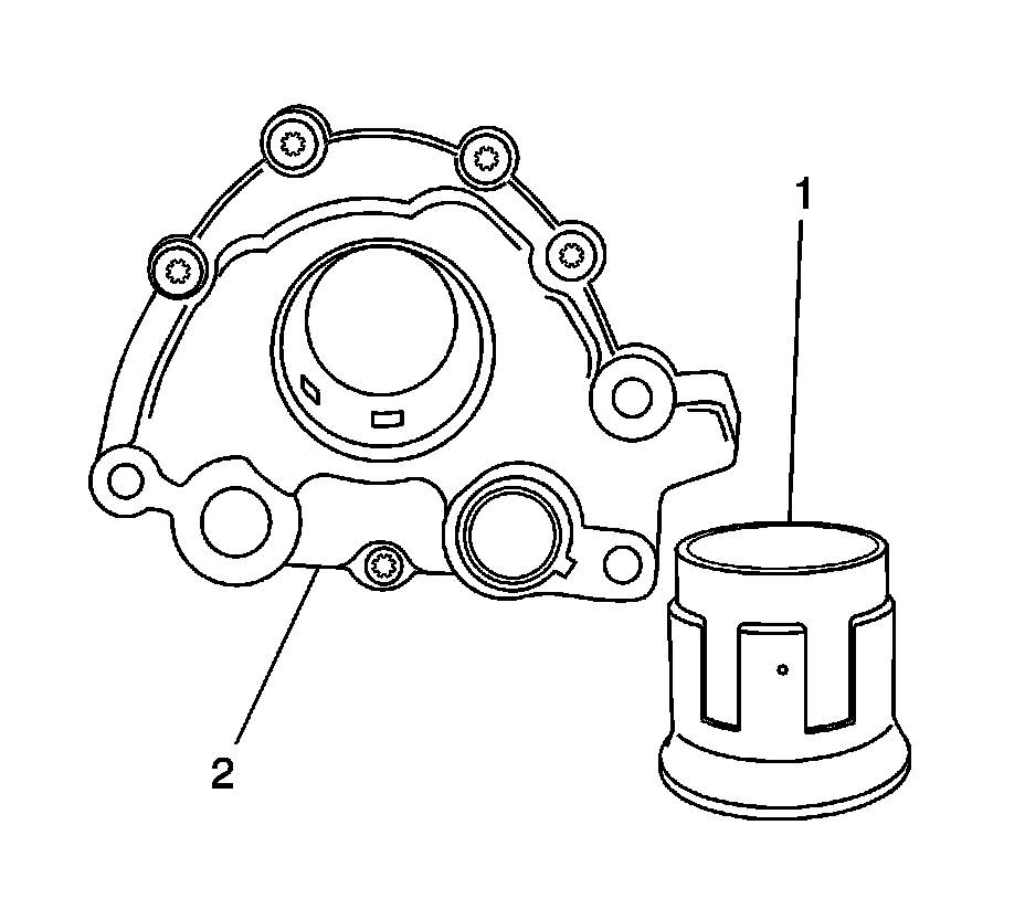 1. Install the oil pump drive spacer (1) into the oil pump (2) so that the drive flat engages the pump rotor.