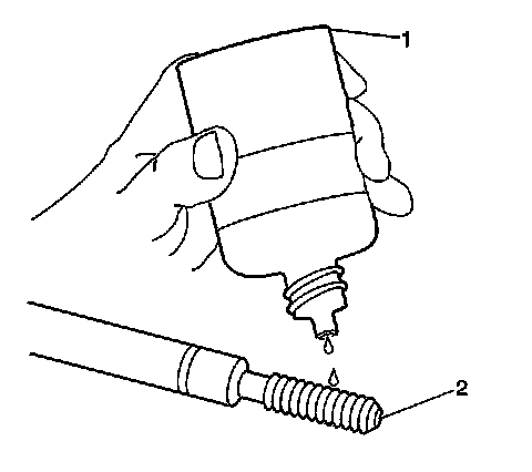 10. Apply threadlock sealant GM P/N 12345493, (Canadian P/N 10953488), J 42385-109, LOCTITE 277(R) or equivalent (1) to the insert OD threads (2).