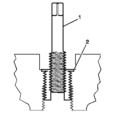 11. Apply threadlock sealant GM P/N 12345493, (Canadian P/N 10953488), J 42385-109, LOCTITE 277(R) or equivalent (1) to the insert OD threads (2).