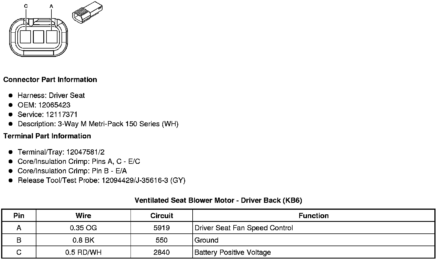 Ventilated Seat Blower Motor - Driver Back (KB6)