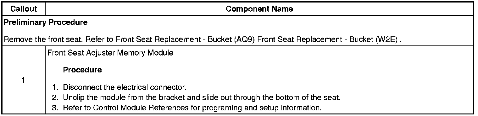Driver or Passenger Seat Adjuster Memory Module Replacement