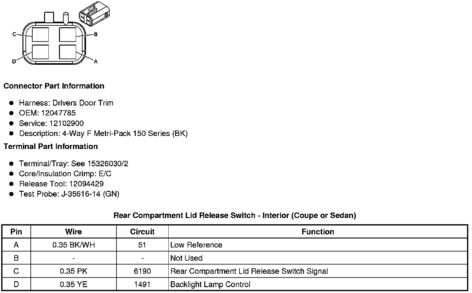 Rear Compartment Lid Release Switch - Interior (Coupe or Sedan)