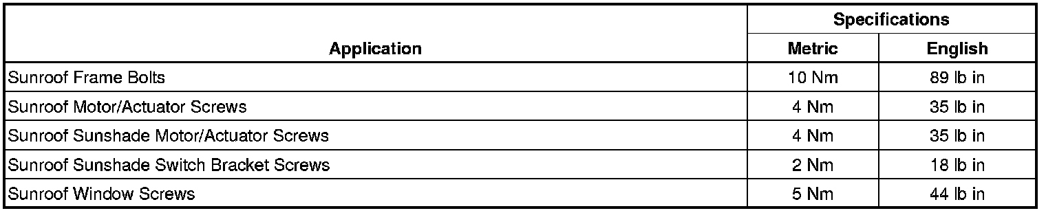 Sunroof / Moonroof: Specifications