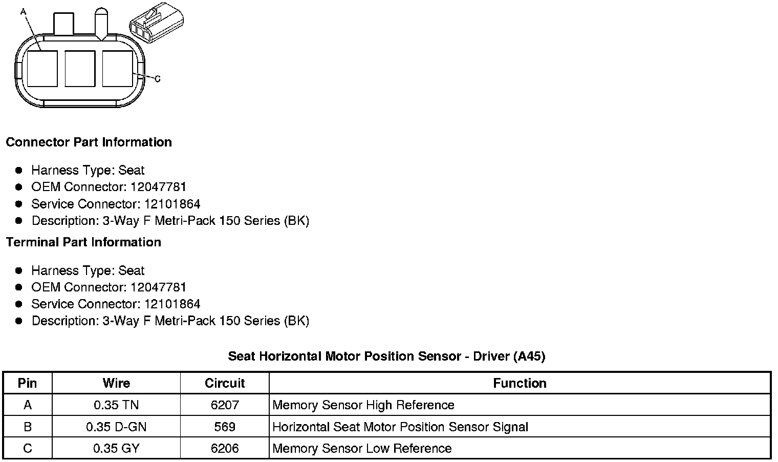 Seat Horizontal Motor Position Sensor - Driver (A45)