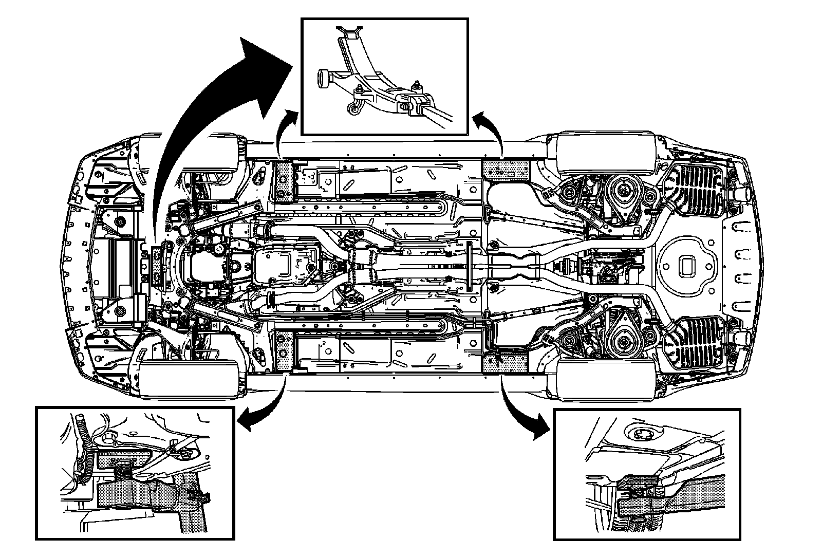 When using a service jack under the front of the vehicle use one of the following locations: