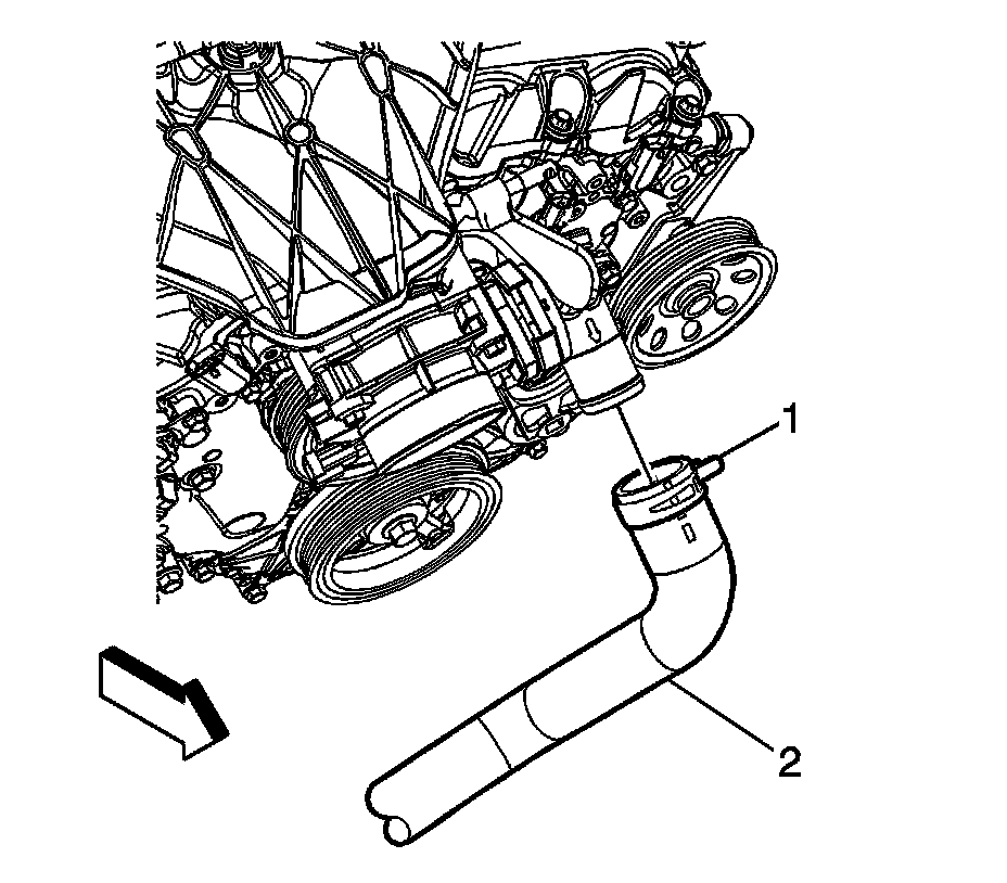 4. Install the radiator outlet hose (2) from the engine coolant inlet pipe.