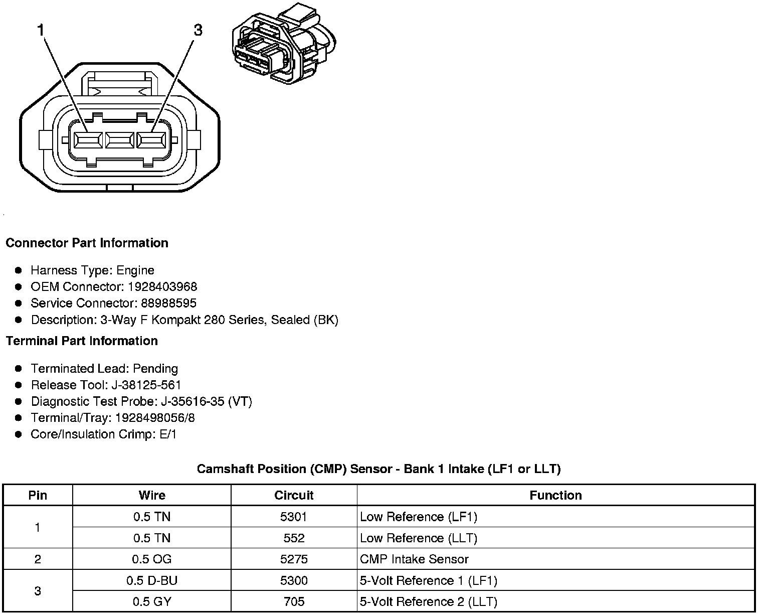 Camshaft Position (CMP) Sensor - Bank 1 Intake (LF1 or LLT)