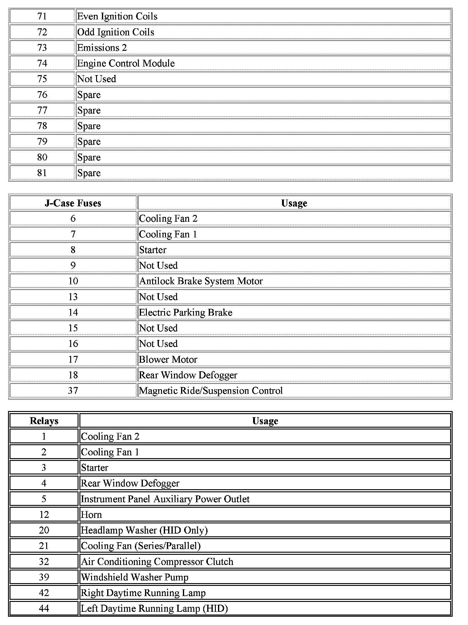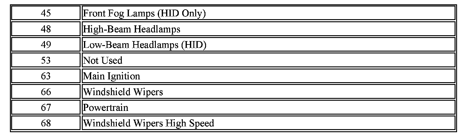 The vehicle may not be equipped with all of the fuses and relays shown.