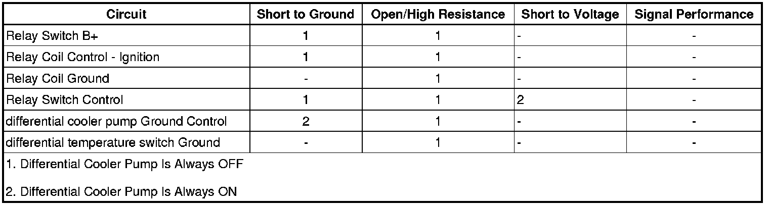 • If the differential cooler pump is always OFF, test or replace the differential cooler pump relay.