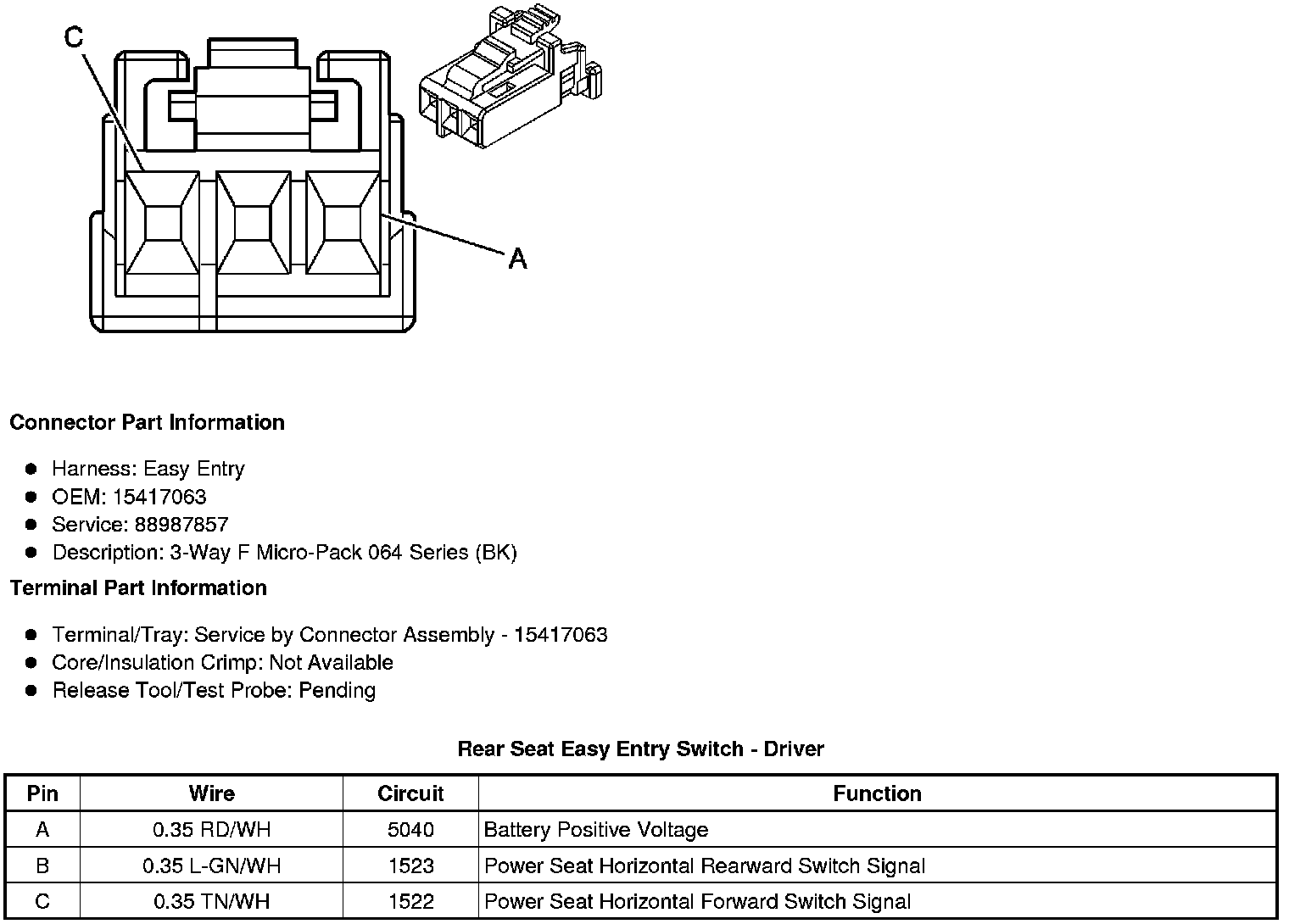Rear Seat Easy Entry Switch - Driver