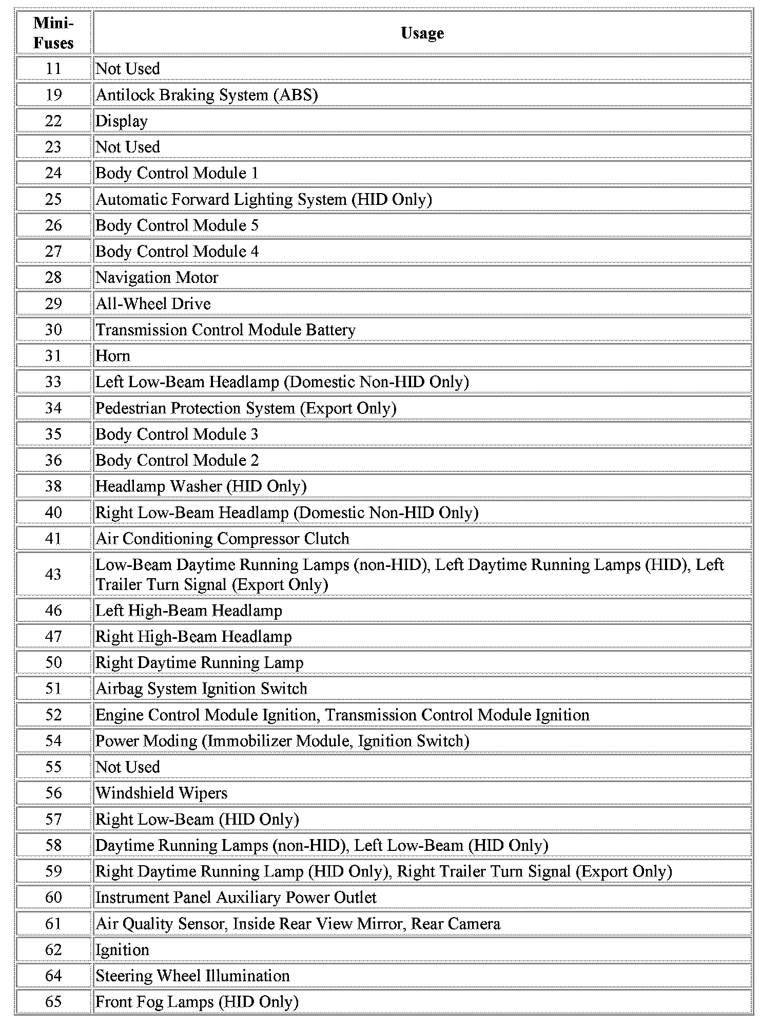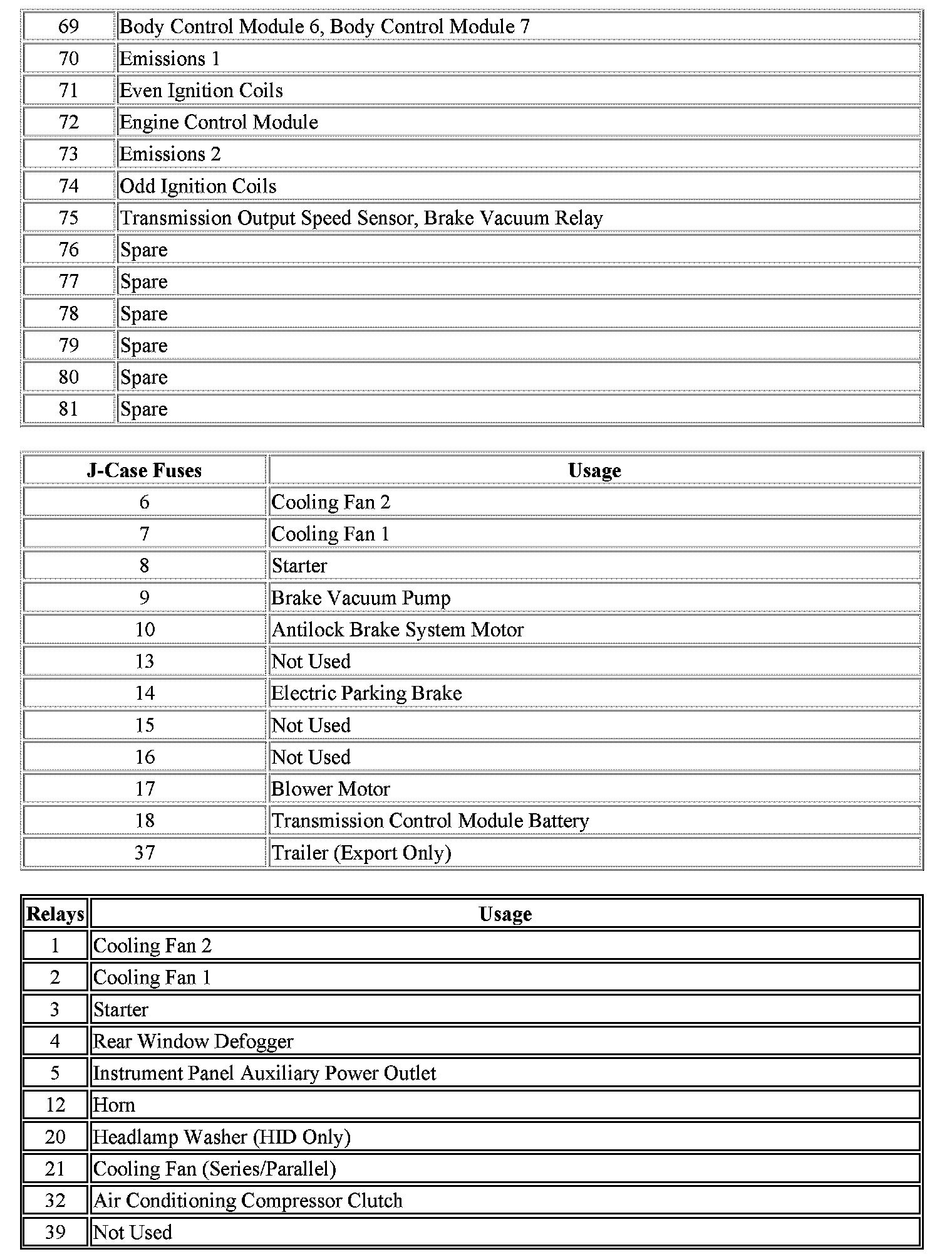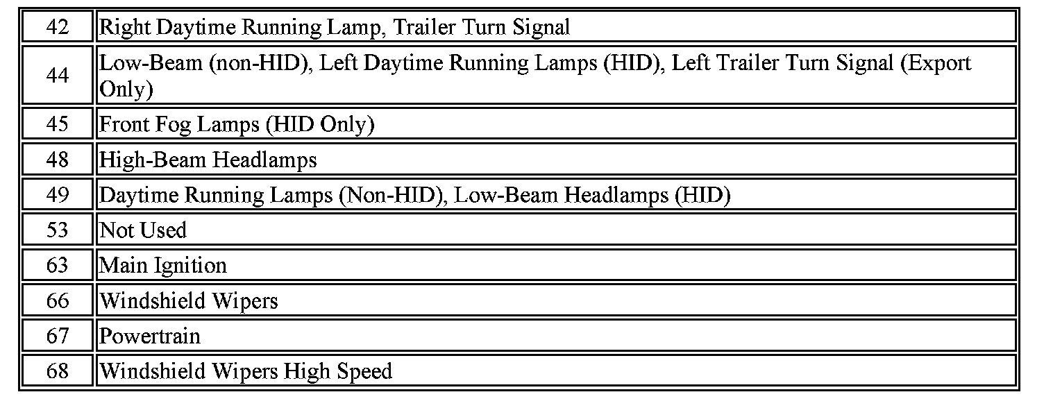 The vehicle may not be equipped with all of the fuses and relays shown.