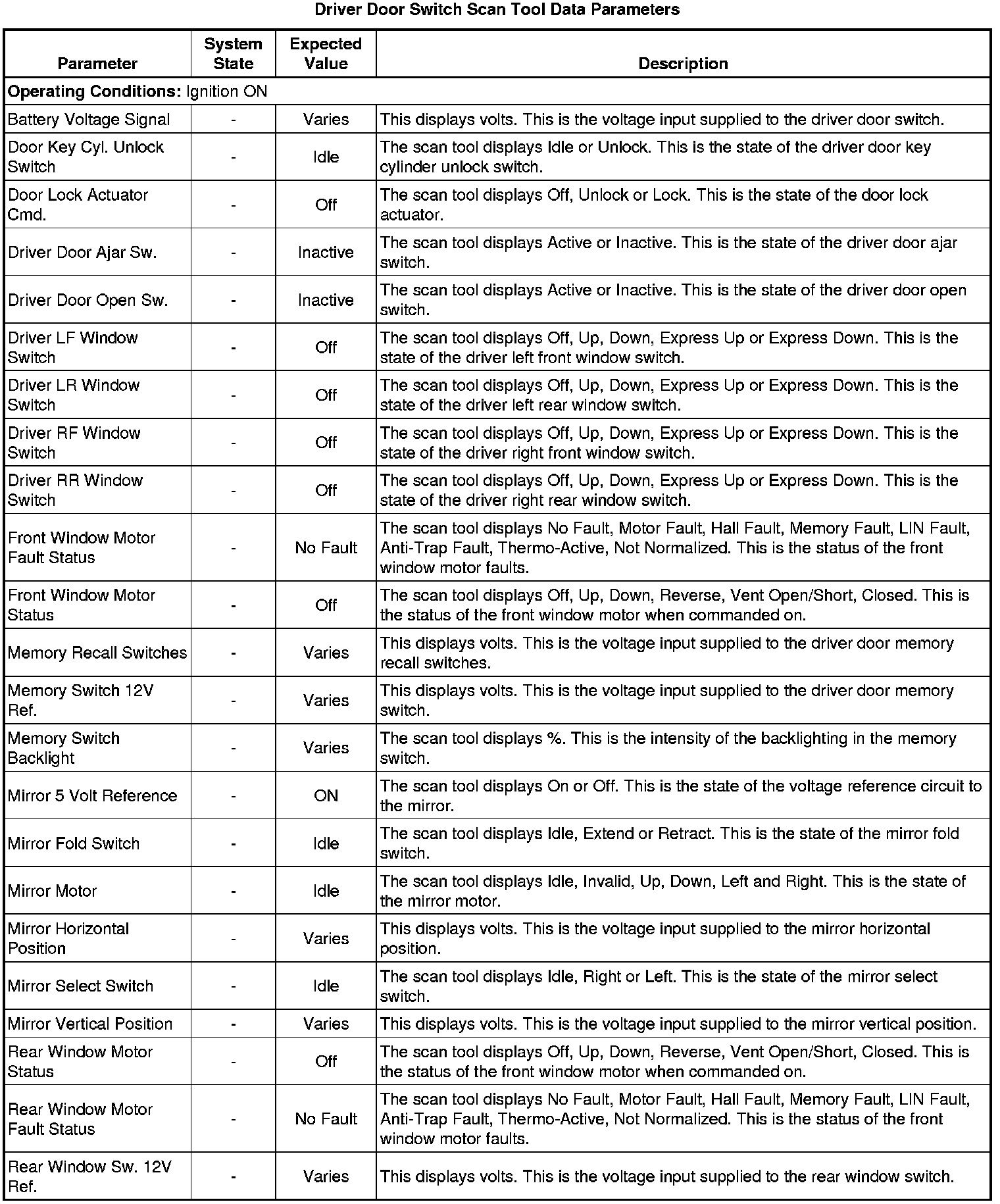 Door Lock Control Module Scan Tool Information