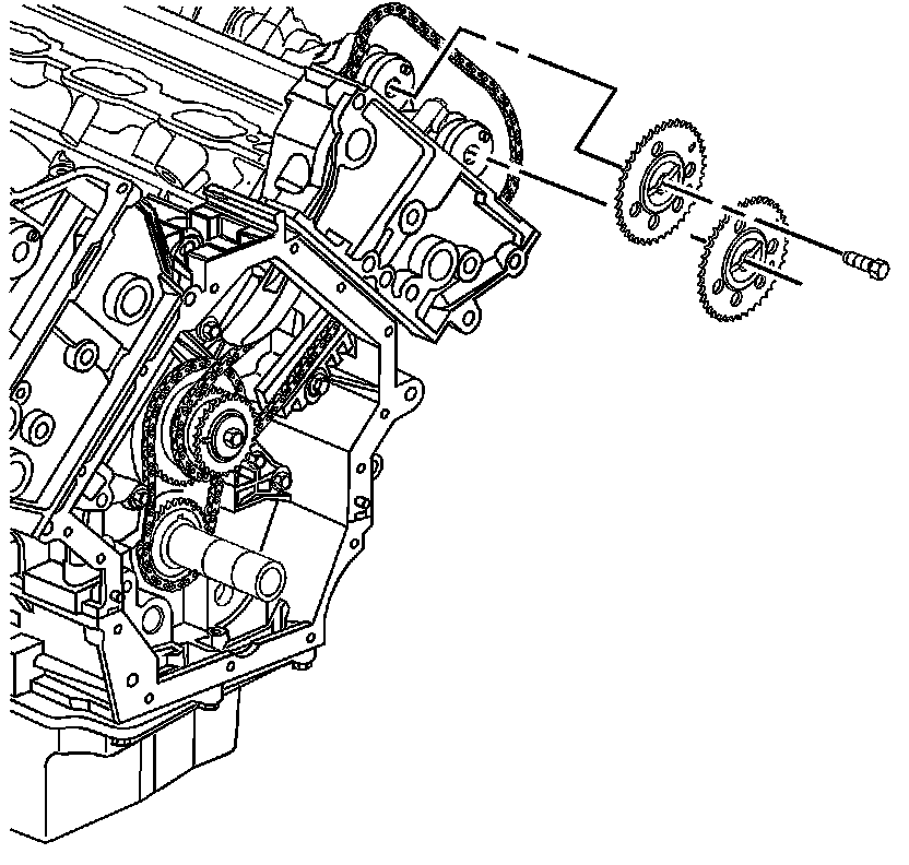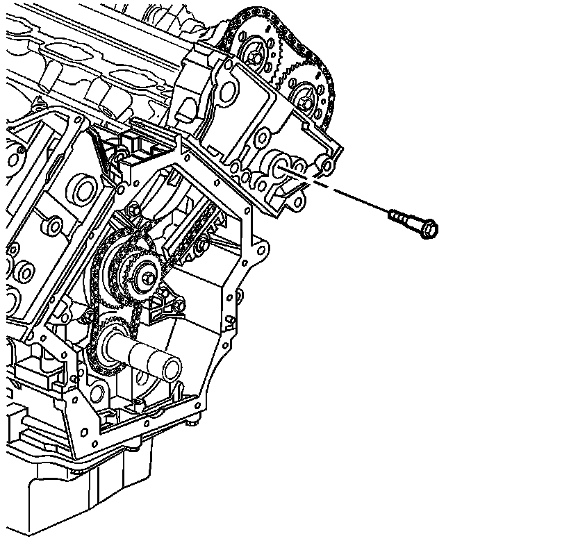 1. Remove the left secondary camshaft drive chain tensioner. Refer to Secondary Camshaft Intermediate Drive Chain Tensioner Replacement - Left Side (Secondary Camshaft Intermediate Drive Chain Tensioner Replacement - Left Side).