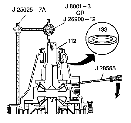 11. Position the dial indicator with the stem contacting the output shaft (112). Set the dial indicator to zero.