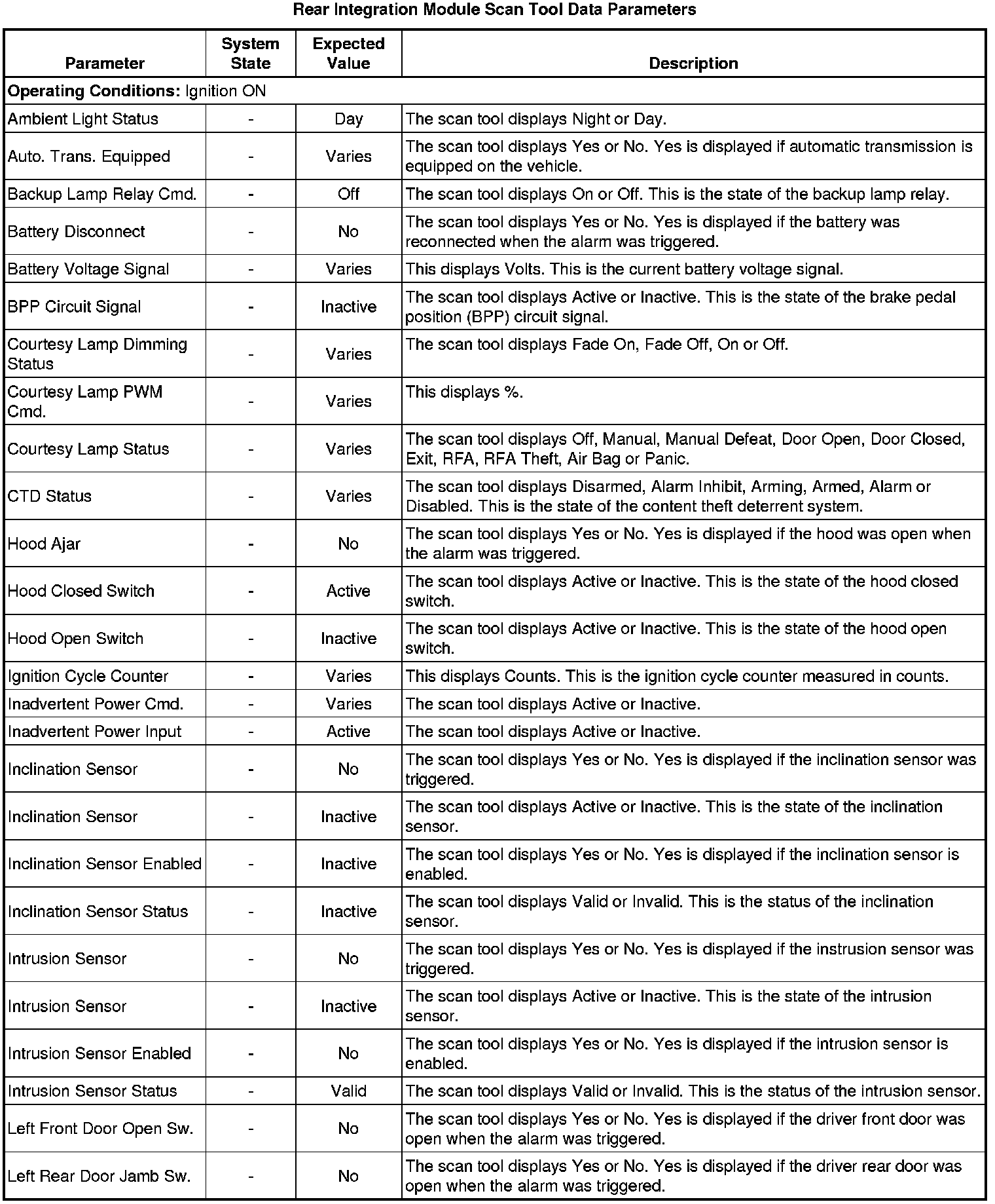 Rear Body Control Module Scan Tool Information