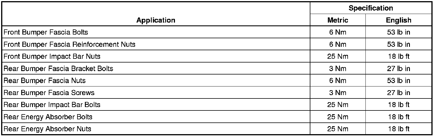Bumper: Specifications