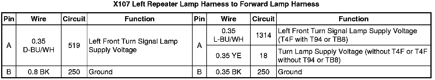 X107 Left Repeater Lamp Harness to Forward Lamp Harness