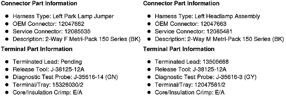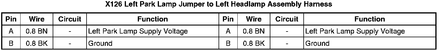 X126 Left Park Lamp Jumper to Left Headlamp Assembly Harness