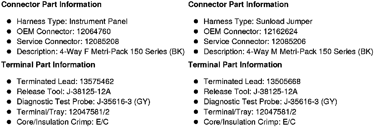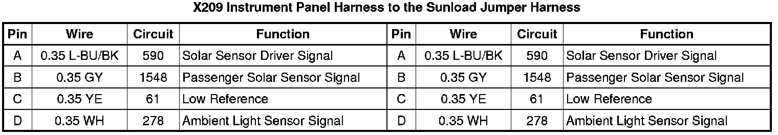 X209 Instrument Panel Harness to the Sunload Jumper Harness