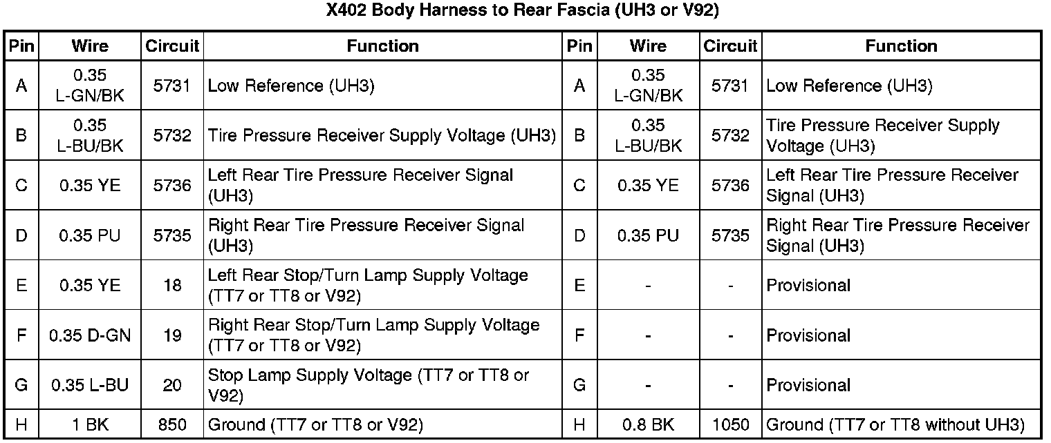 X402 Body Harness to Rear Fascia (UH3 or V92)