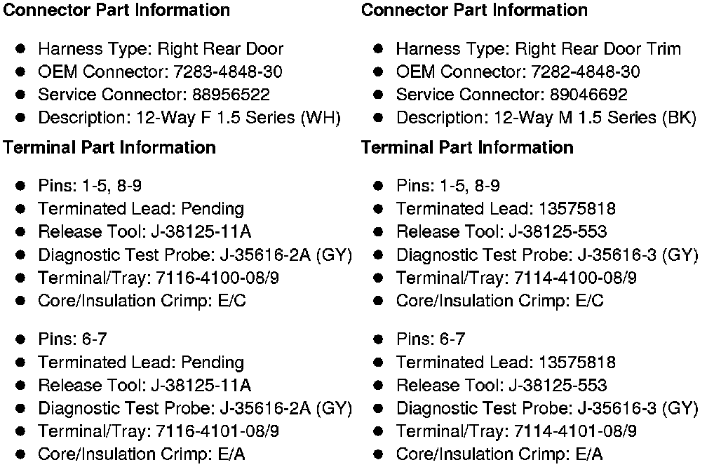X801 Right Rear Door Harness to Right Rear Door Trim Harness