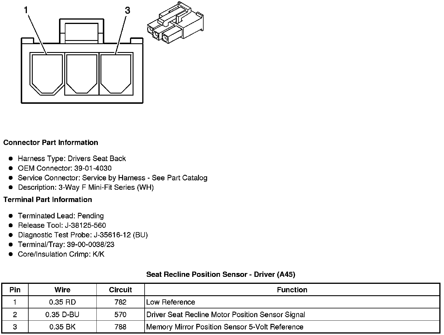 Seat Recline Position Sensor - Driver (A45)